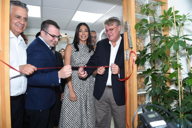 ICEJ vice president & senior spokesman David Parsons was on hand at the dedication ceremony on Tuesday evening to cut the ribbon at the new national calling center, along with Shimon Sabag of Yad Rosa, Rabbi Ari Lamm, the CEO of Bnai Zion, and Israeli-American actress and Haifa native Moran Atias.